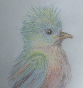 Lees hier het verhaal achter deze paradijsvogel, die ik onlangs tekende.
