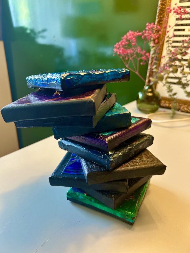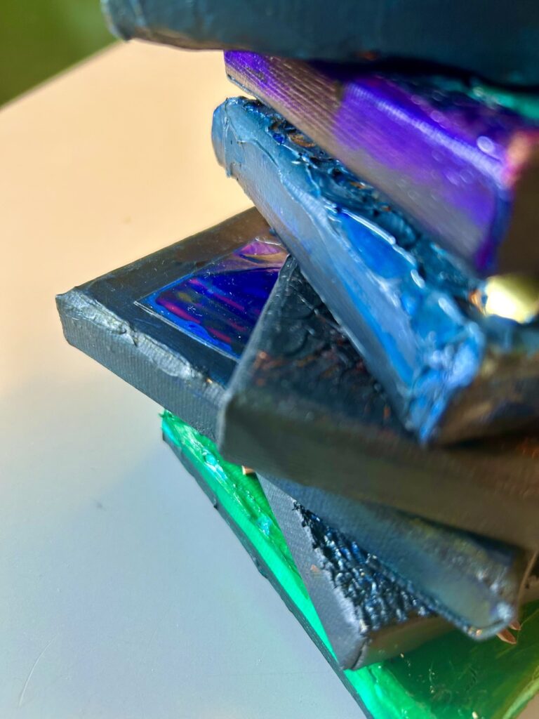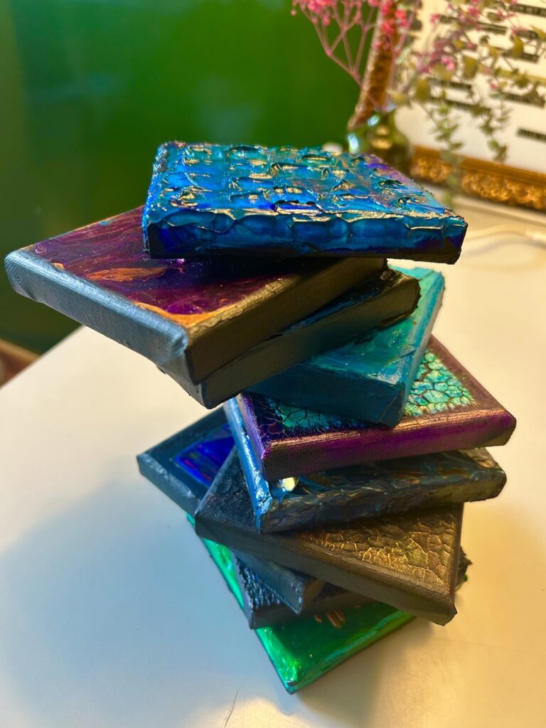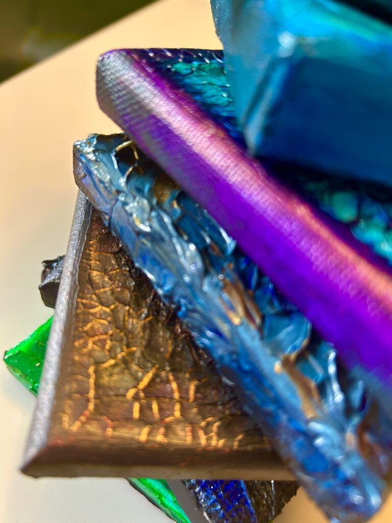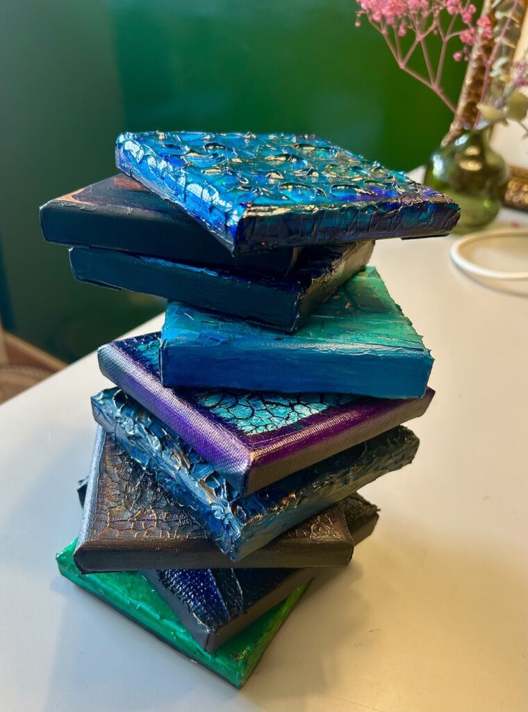Experimenten op canvas met acryl, reliëf, mediums en afval.